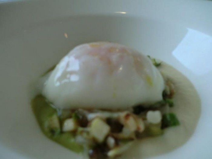 Amo sempre l’uovo del menu: questo breakfast è una barocca costruzione vegetale in cui il calamaro gioca solo di consistenza. Buonissimo e goloso, nonché, ancora, fresco.