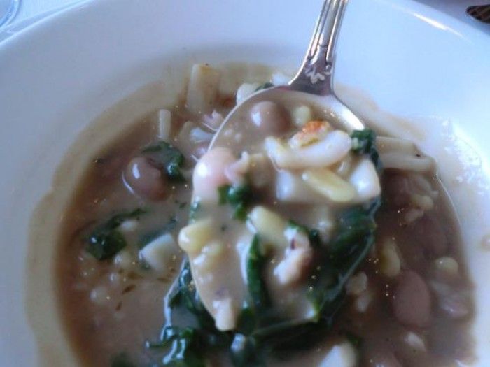 Anche per le minestre Gennaro ha la mano. Quella di scoglio mi colpì perché la provai fredda al termine di una trasmissione televisiva e non si era addensata alcuna colla gelatinosa tipica delle preparazioni di pesce. Con questa piatto il cuoco decide che è ora di smettere di salivare ed è il momento di iniziare a mangiare. Gola e piacere, decisiva la bottarga nel risolvere la ricetta.