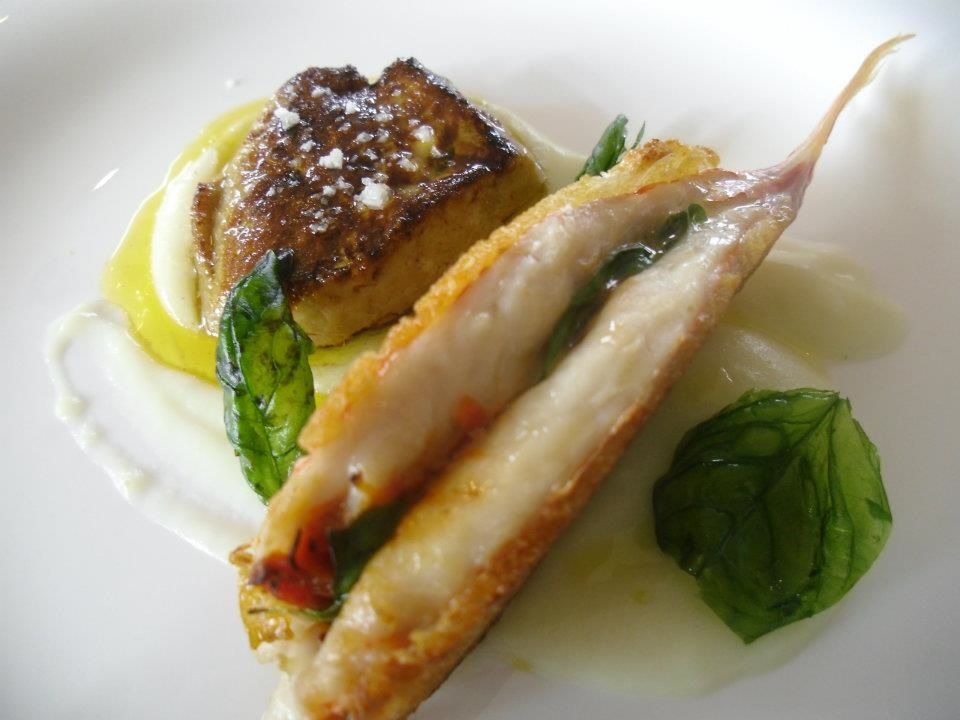 Per cominciare una insalatina tiepida di mare su soffice di patate e asparagi con olio extravergine alla maggiorana; semplice, gustosa e senza orpelli. Più complessa ma gustosa e ben equilibrata la triglia con una leggerissima panatura e con dentro pomodori secchi e basilico accompagnata – senza subirla – da una piccola scaloppa di foie gras, su una vellutata di topinambur. Bel piatto davvero.