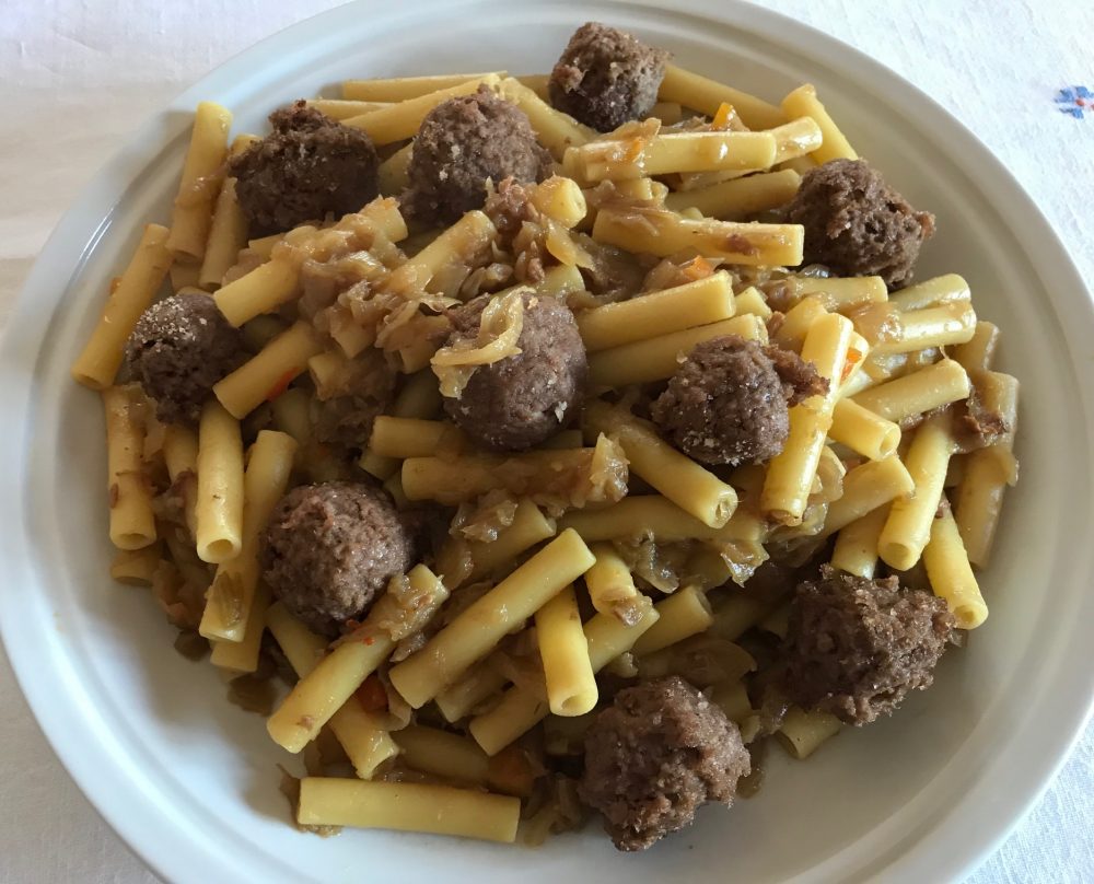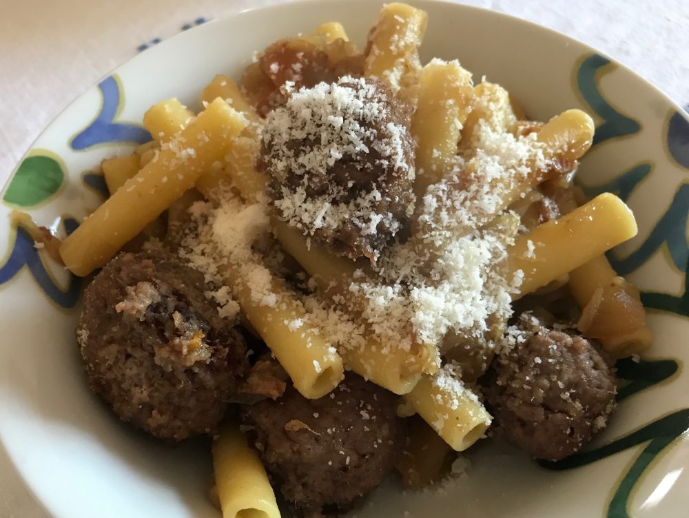 Sono arrivato in ritardo.Il danno è stato fatto visto che sono comparse le polpette come non si fa più neppure nei migliori ristoranti americani dove si cerca di copiare la cucina italiana tipo fettuccine con polpettine alla bolognese.PS.Mezzo più mezzo meno chiamiamo pure la pasta mezzanelli e non se ne “parli più “.FM.