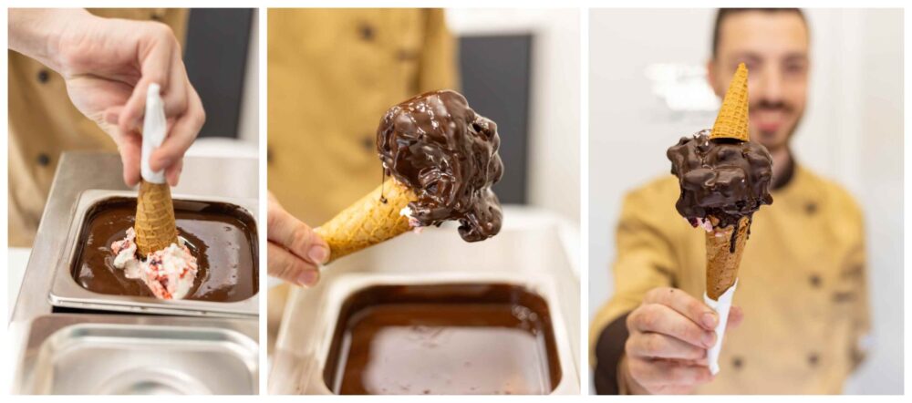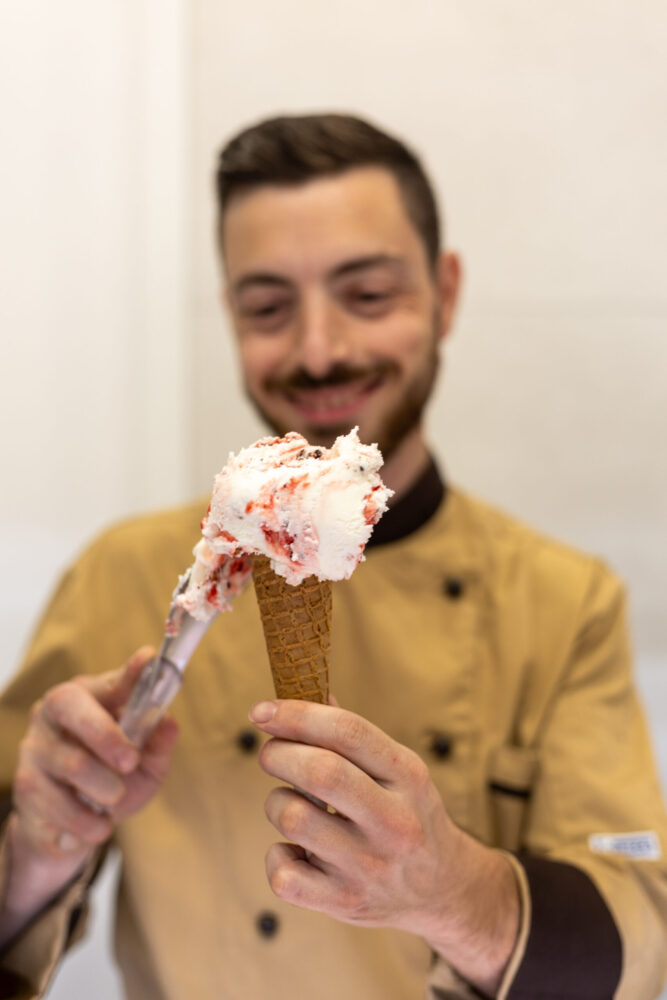 Il maestro gelatiere Davide Botti porta con sé una grande esperienza e riconoscimenti prestigiosi. Il gusto “Vesuvio”, vincitore di riconoscimenti internazionali, è un perfetto esempio di creatività: albicocca Pellecchiella, lacryma Christi bianco e croccante di mandorle zuccherate si fondono in un gelato capace di raccontare la storia e i sapori della Campania