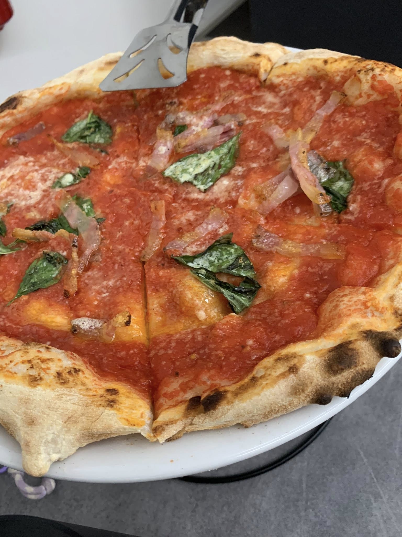 Impasto a lunga lievitazione, base sottile e cornicione moderato: qui non ha attecchito la scuola del “canotto”. L’attenzione per le farciture è quasi maniacale, dalla selezione di prodotti del territorio agli abbinamenti di stagione, a seconda di quello che offrono l’orto e il mercato.