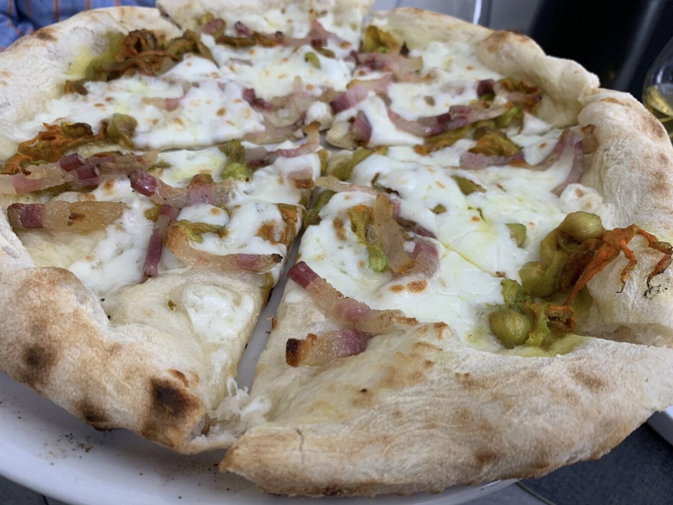 Da bonus la pizza “Zi’ Monaco” che Tommaso ha voluto dedicare allo zio, memore delle grandi insalate che preparava nella bella stagione, con i pomodorini, i peperoncini verdi e tutto quello che raccoglieva in giardino: davvero il profumo dell’estate in tavola.