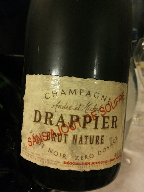 Letteralmente sedotta dagli champagne di Drappier. Grande classe e personalità caratterizzano entrambe le etichette in degustazione. Brut Nature Sans Soufre, non dosato e senza solfiti, pinot noir in purezza. Molto espressivo al naso, minerale di polvere da sparo, pepe verde, cassis e piccoli accenti di rosmarino. Il sorso è un po’ scontroso, ruvido, ma ben calibrato, lungamente agrumato e sapido.