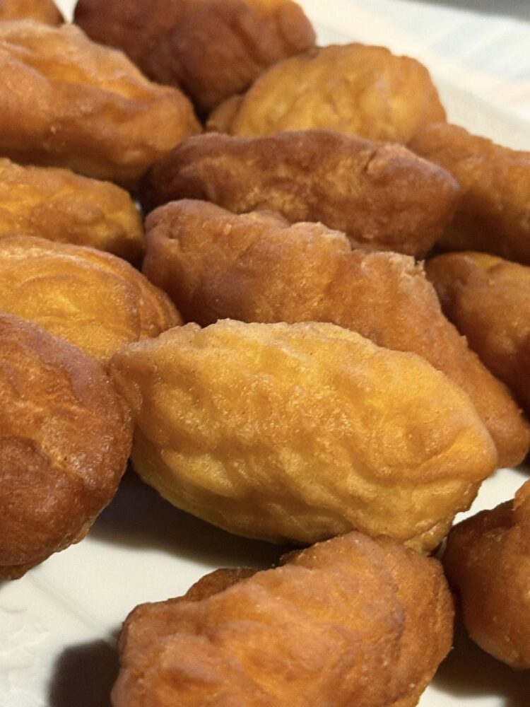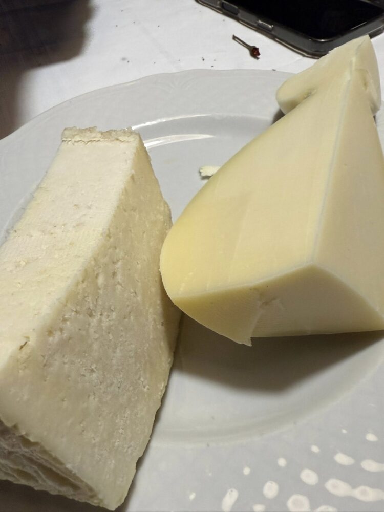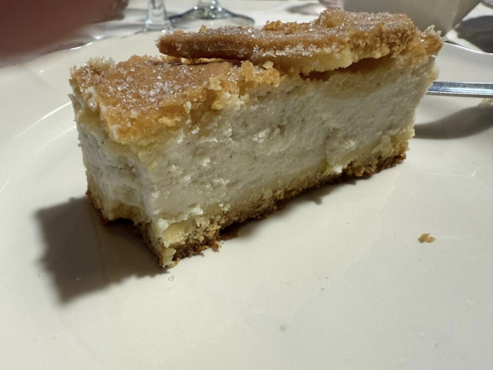 Si chiude, con gli struffoli salati che accompagnano caciocavallo e pecorino, la noglia (buona), e una soppressata non all’altezza di quelle degustate in passato, probabilmente un po’ rovinata da una permanenza in frigo di alcuni giorni. Torta alla ricotta e rosoli fatti in casa.