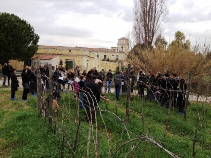 Il tempo è stato avvertito…in tempo: mi raccomando, per il giorno 19 gennaio non fare il monello! Ma lui dispettoso ha voluto mantenere il broncio. Ha soltanto concesso, bontà sua, una piccola pausa. E così, dopo giorni di pioggia incessante, vento, freddo e perfino una spruzzata di neve, proprio nel momento topico della manifestazione fortunatamente si è ammantato di un piccolo squarcio di luce. E questo ha consentito quantomeno di procedere ad una lezione didattica di potatura invernale delle viti presso l’Azienda Agricola La Morella di Battipaglia, sotto la supervisione dell’ottimo enologo Mario Mazzitelli, coadiuvato nell’occasione dalla simpatica Patrizia Malanga