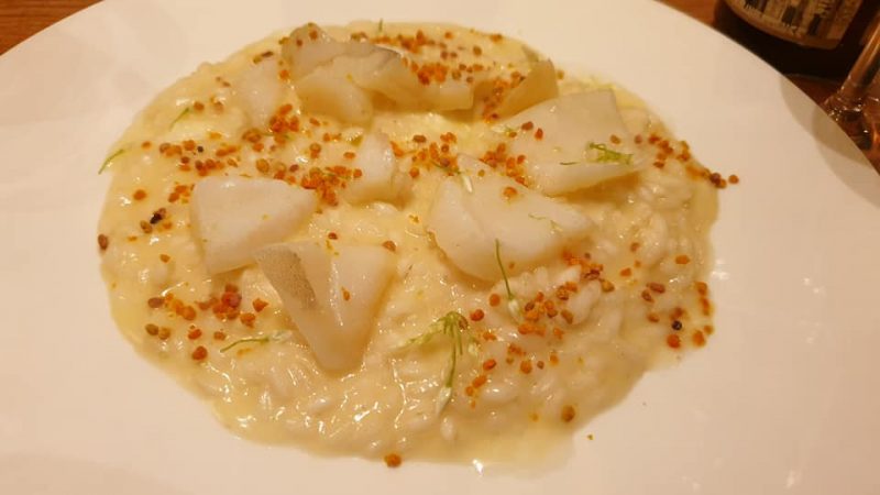 Premessa dovuta per raccontare la mia cena da Passerini. Dopo l’esperienza di Rino, che è divenuto un locale cult per gli appassionati, Giovanni si sposta in un ambiente più grande, apre un pastificio di fianco al ristorante, passa dalla cucina all’impronta, senza menù, ad una carta. Giovanni Passerini alfiere della bistronomie francese? No, alfiere della trattoria moderna italiana. La cucina italiana, tra le altre cose, si differenzia da tutte le altre cucine del mondo per avere “una partita” in più, quella dei primi. L’affondo di Giovanni nella tradizione italiana, genovese, vignarola, puntarelle è chiaro, le cotture di paste e riso al dente. Veniamo alla nostra cena. L’inizio è un omaggio a Monsier Passard con asparagi, camomilla, crema di latte, mimosa al polline di fiori, delizioso, come il merluzzo confit con vignarola, insalata cotta e salsa al vino. La batteria delle paste lascia il segno. Cotture perfette, italianissime, come tanti dei prodotti utilizzati, su tutti una magnifica esecuzione delle casarecce alla genovese con l’aggiunga dell’anguilla affumicata che ne amplifica e allunga il gusto. Chiusura con l’animella, cottura millimetrica e il riso con il latte, nella versione raffinata di Giovanni che aggiunge caramello salato e pompelmo rosa in pezzi e sorbetto.