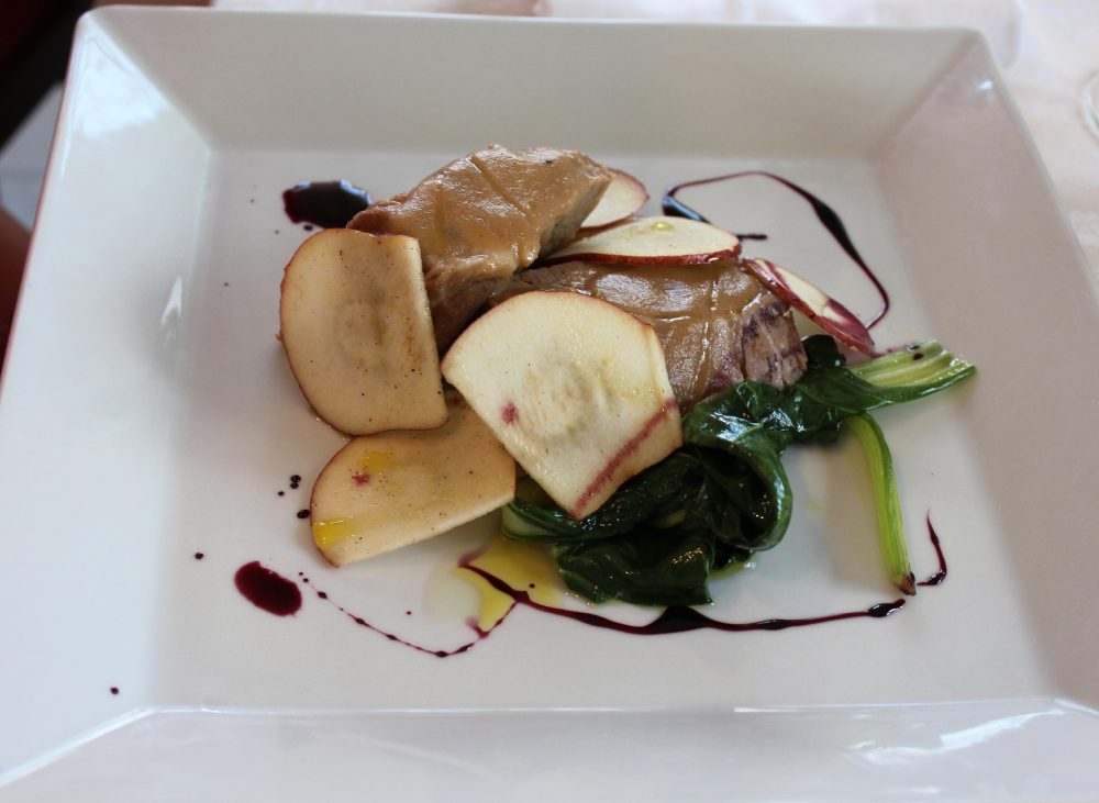 Il capocollo di maiale brasato e affumicato in casa con insalatina di mele annurche alla cannella, salsa al limone.
