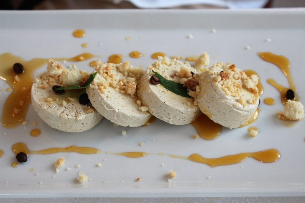 Giulio Restaurant dessert – migliaccio di grano turco, mela annurca e zabaione al marsala