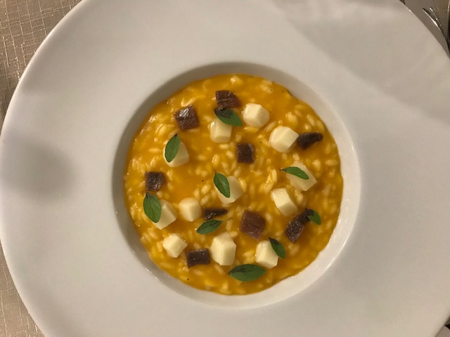 Giulio Restaurant – Riso carnaroli con caprese di pomodorino giallo del Vesuvio, caprino a pasta molle, origano selvatico ed acciughe salate