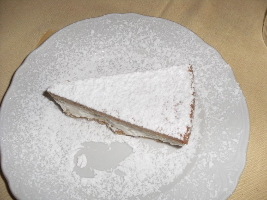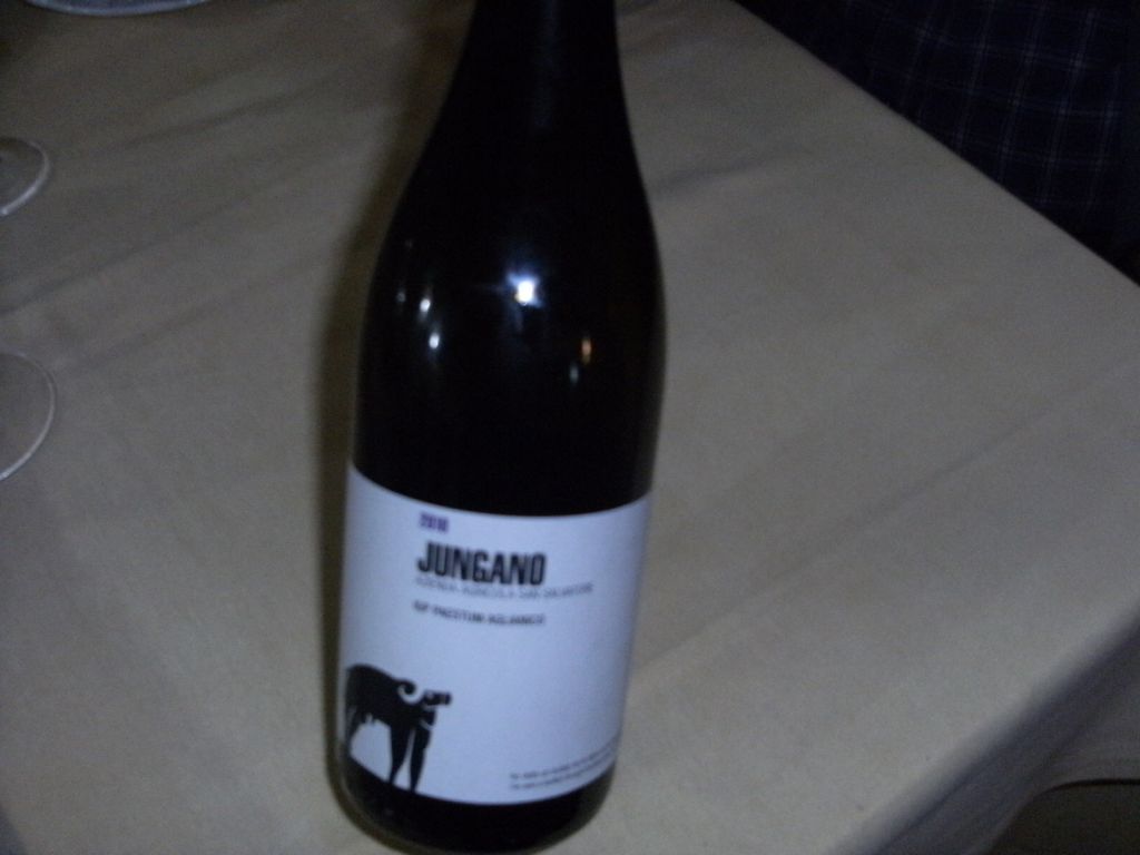 Per antipasto abbiamo mangiato delle squisite patate novelle fritte con tutta l’esile buccia e tagliate a dischetto. Sono chiamate localmente “cauzodde”, perché sembra che indossino dei pantaloni; per dolce una porzione di torta ricotta e pera e poi il proprietario ha voluto stappare una pregevole bottiglia di Aglianico Jungano della locale azienda agricola San Salvatore di Peppino Pagano.