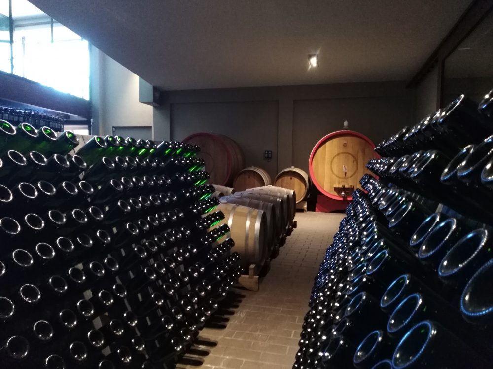 Cantina Coppola Bottaia e bottiglie di spumante sulle pupitres