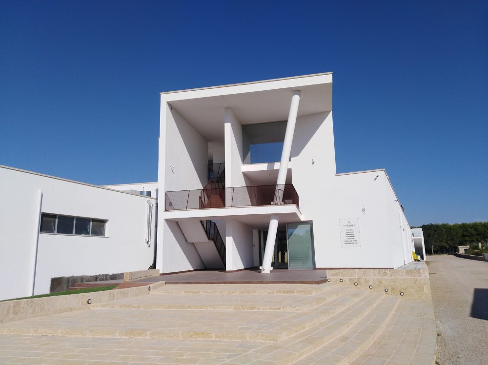 Facciata esterna del nuovo ristorante Vigneto del Gusto e della nuova Cantina Coppola