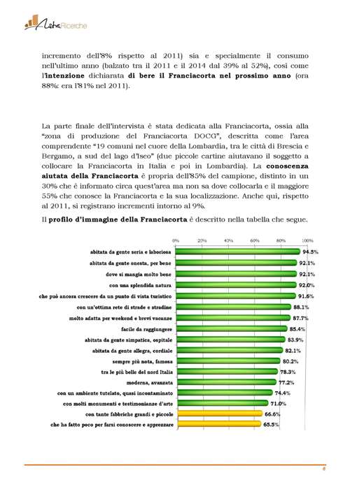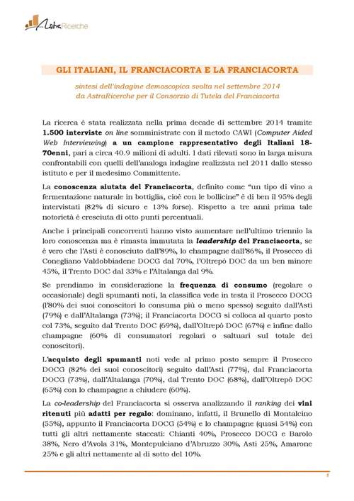 Sintesi dell’indagine demoscopica svolta nel settembre 2014 da AstraRicerche per il Consorzio di Tutela del Franciacorta