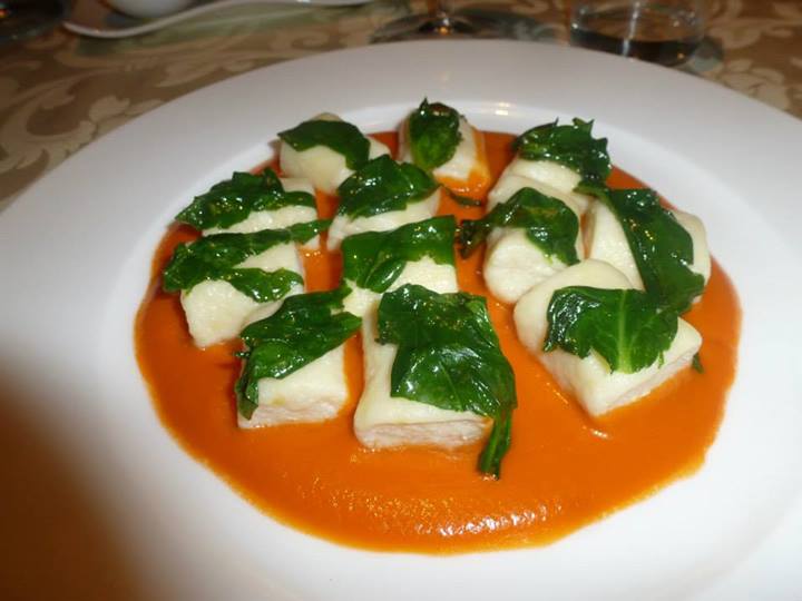 Gnocchi di ricotta su salsa di peperoni e spinaci