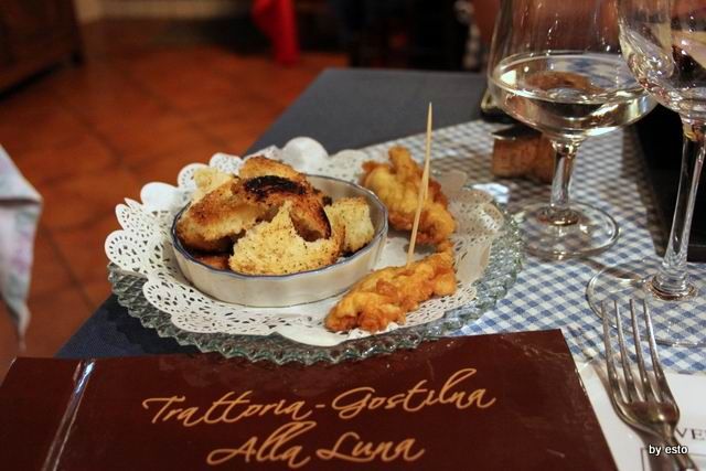 Si sorseggia una buona Ribolla Gialla di Jermann per benvenuto con sardoncini fritti alla grande con pan bruschetta.