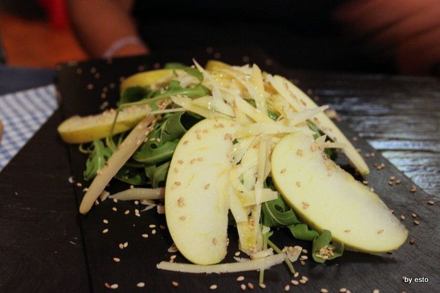 Poi mele verdi e Montasio con misticanza e sesamo.