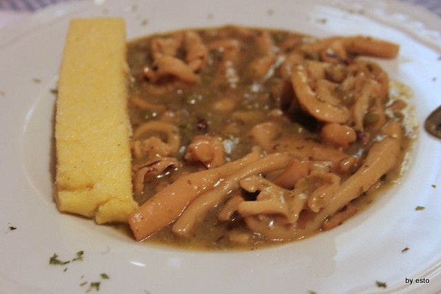 La zuppa di seppie e piselli con la polenta di mais giallo. Intensa e gustosa.