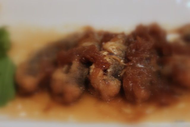 Le sardine in saor: cipolla, agrodolce con aceto di vino ristretto. Prima fritte e dunque in carpione.
