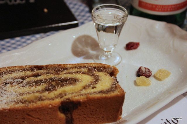 Per dolce la torta gubana con tocchetti di canditi.