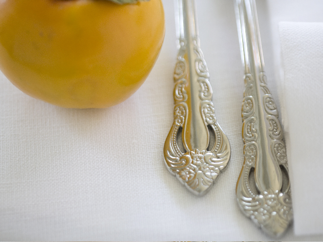 Sala su toni blanc de blanc, che sarà ancor più piacevole con le luci lunghe delle sere primaverili maggesche, per non parlare del piacere di mangiare all’aperto ,con il caldo estivo qui temperato di arietta fresca.