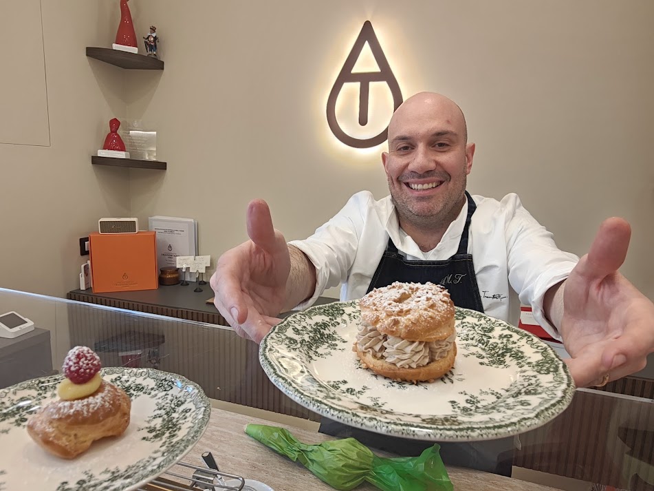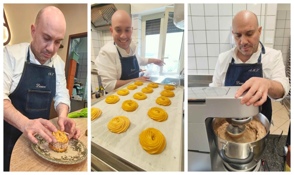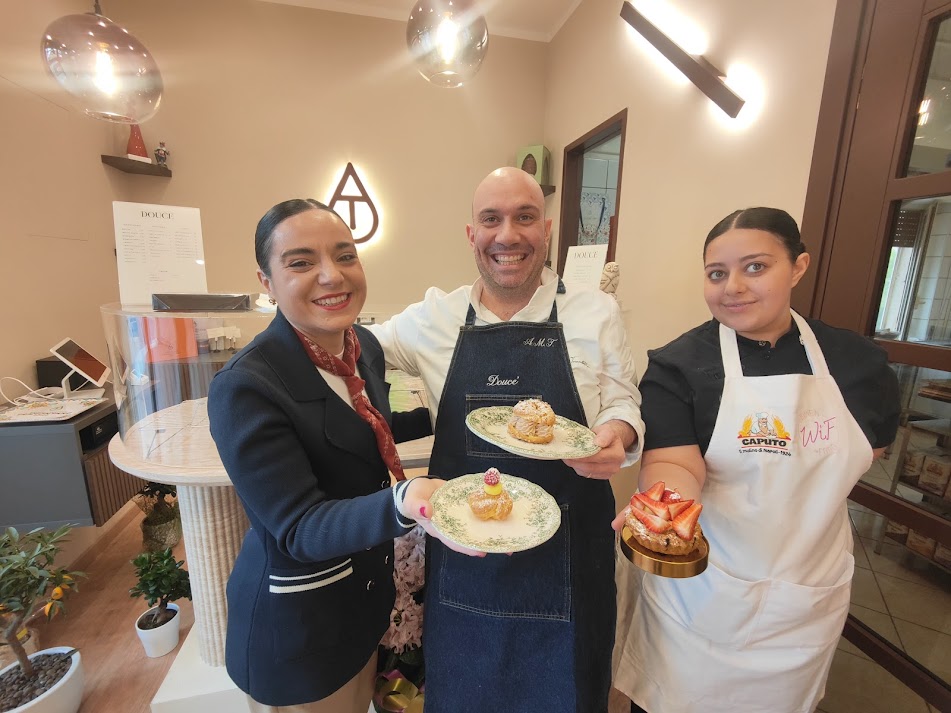 au citron, tiramisù, millefoglie e crostatina alle fragole, torte moderne, caprese, pastiera, tarte aux fraises, tarte aux framboises e altri “pezzi unici”. “Avevo bisogno di un laboratorio in centro a Gragnano, qui c’era una biscotteria dove ho anche lavorato. Il nome è un richiamo alla mia esperienza in Francia e alla lingua napoletana”, ricorda il pastrychef, esperto negli impasti e nelle lievitazioni che con Mulino Caputo gira ancora il mondo per progetti di formazione come quelli prossimi in Armenia e Taiwan per insegnare a realizzare croissant e panettoni con le farine del mulino napoletano.