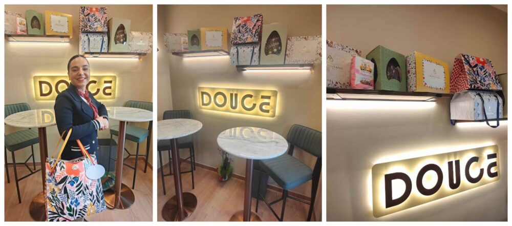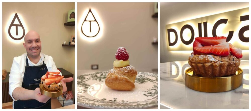 Una pasticceria-destinazione, dove venire appositamente per lasciarsi conquistare dall’esperienza di Angelo Mattia Tramontano, con la giovane Alessandra e aiutato dalla moglie Rosa che si divide tra il suo lavoro di psicologa e il supporto all’interno di Douce.