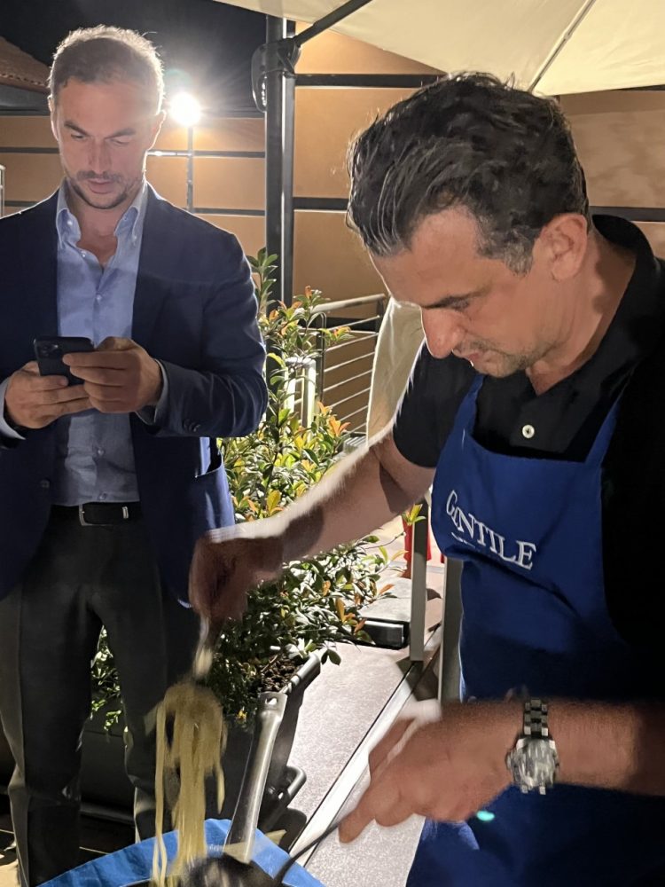 A sera, momento di alta gastronomia territoriale, nel bistrò Gentile di Agerola, dove amorevolmente accolti da Alberto e Pasquale Zampino, in un contesto di grande piacevolezza bucolica, i medici convenuti hanno provato le migliori espressioni dei piatti del territorio, a partire da squisiti salumi, latticini e sottoli, prodotti in proprio dall’azienda agricola Gentile, passando per la parmigiana di melanzane e una croccantissima pinsa, fino alla celebre pasta, sempre autoprodotta, famosa tra i buongustai di tutta Italia: Pasta e piselli, dal gusto deciso ed equilibrato e uno squisito spaghetto aglio e olio che ha deliziato tutti i medici presenti.