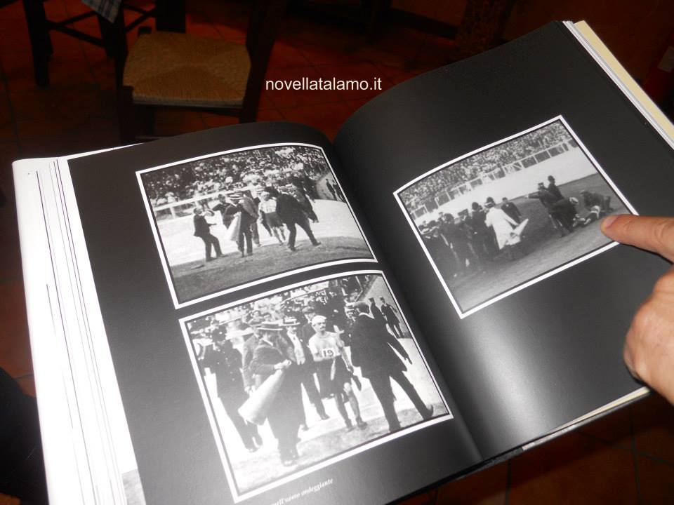 E’ quasi con commozione che Vincenzo Petrone mi mostra il libro su Dorando Pietri, atleta italiano “famoso per non avere vinto”. Egli infatti passò alla storia dell’atletica leggera per il drammatico epilogo della maratona ai Giochi Olimpici di Londra 1908: tagliò per primo il traguardo sorretto dai giudici di gara che l’avevano visto barcollare più volte, stremato dalla fatica. A causa di quell’aiuto fu squalificato e perse la medaglia d’oro ma le immagini e il racconto del suo arrivo fecero il giro del mondo e diventarono la chiave del suo successo.