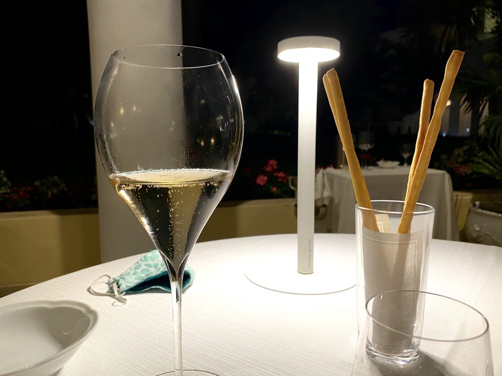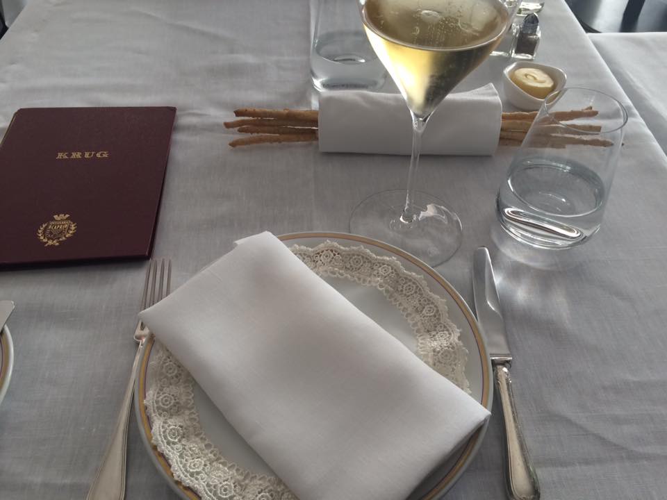 Guidato proprio dallo chef, nel pre-degustazione egli ha provveduto a scegliere come champagne a tutto pasto il Krug Grand Cuvée, dal colore dorato vivo e brillante. Mieloso, burroso, bollicina elegante e per nulla aggressiva. Il grande merito del Quisisana è quello di ospitare una delle pochissime Krug Lounge del mondo e di curarne ogni dettaglio.