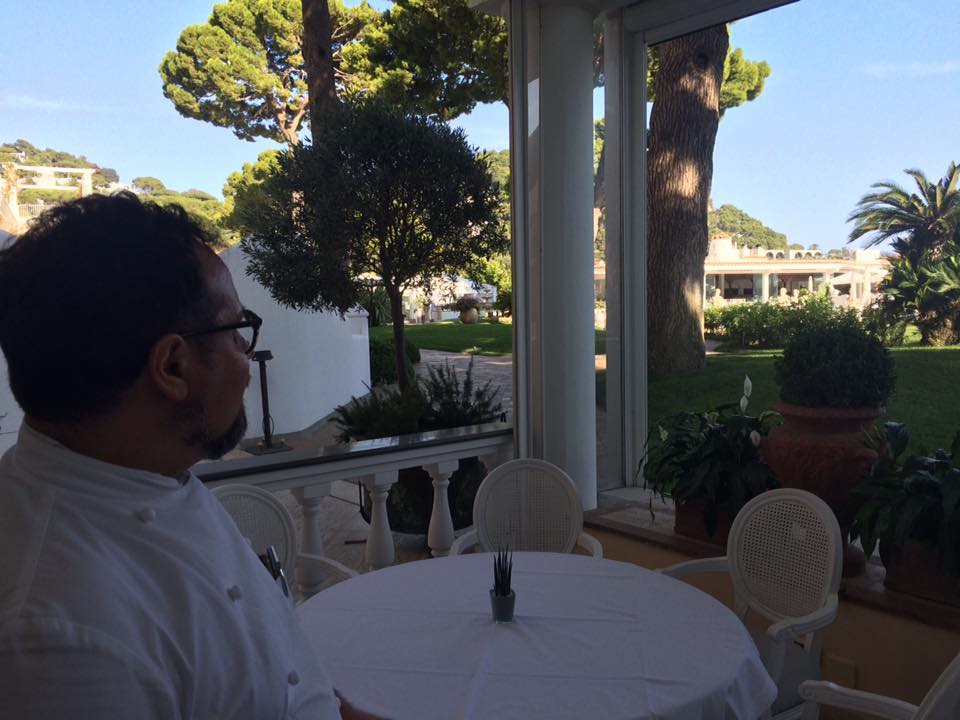 Capri, l’isola del sogno, l’isola azzurra, una perla del patrimonio naturale ed artistico italiano della quale soprattutto noi campani dobbiamo andare fieri. Capri è senza alcun dubbio un classico storico-culturale d’Italia, cosi come un classico intramontabile è il Grand Hotel Quisisana che con la sua antica maestosità domina via Camerelle ed il centro caprese. Executive chef del Grand Hotel Quisisana è Stefano Mazzone, uomo di grande autoironia e cultura, anima siculo-veneta di formazione marchesiana, il suo stile elegante e misurato rappresenta il giusto compromesso tra l’innovazione gastronomica e la classicità immutabile di una struttura come il Quisisana. Mazzone é riuscito, ad entrare in simbiosi con questa grande casa e con il suo ruolo riuscendo a trovare una proporzione aurea. Testa al nord, cuore al sud e mani qui. La sua cucina è quella di questo territorio, il biglietto da visita che rappresenta la storia dell’hotel Quisisana. Il meglio della storia e della ricerca. Innovazione e tradizione. La ricerca nella “storia” e la storia nella “ricerca”, ecco la chiave di lettura della cucina del Rendez-Vous, un elemento di modernità nel classico e di classico nella modernità.