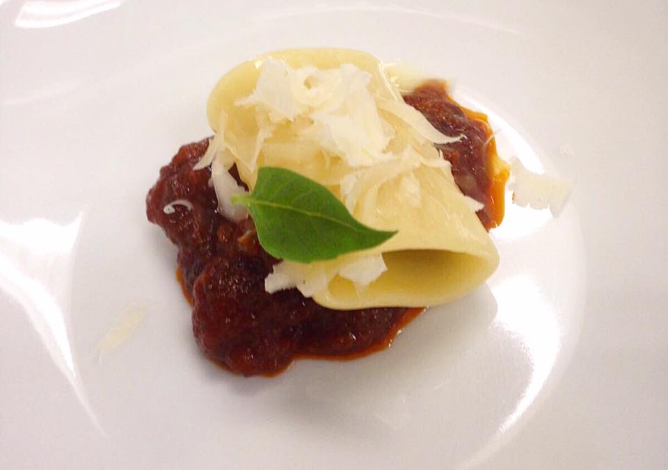 “O’ Rraù ca me piace a me o faceva sulo Mammà”. Amouse-Bouche tratto dalla poesia di Eduardo de Filippo, basato sulla ricetta originale tratta dalla commedia “Sabato,Domenica e Lunedì”.Non serve aggiungere altro. Cotto lungamente e “pippiato” a dovere, chesta carne c’ a pummarola è l’omaggio dello chef a quella che oramai è diventata la sua terra, la sua casa Solo un polentone con il cuore siciliano può tributare questo omaggio a Napoli. In chiave più raffinata questo è certo ma pur sempre familiare, senza fronzoli come piace a noi.