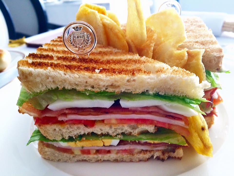 Si potrebbe finire con un dolce, dalla caprese alla ricotta e pera, passando per la pesca Melba, ispirata alla storia culinaria di Escoffier. Io invece opto per assaggiare il sensazionale Club Sandwich del Quisisana. Un must, un evergreen, un piatto sempreverde di cui lo chef Stefano Mazzone ne prepara oltre un centinaio al giorno. Perfetto pool side e da degustazione. Una maestosa torre di lattuga, pomodoro, maionese, uova, tick-cut american bacon e tacchino. Pane croccante e soffice. Per nulla pesante. Un pò il simbolo della ristorazione d’ albergo, pronta a soddisfare qualsiasi esigenza del cliente ad ogni ora della giornata.