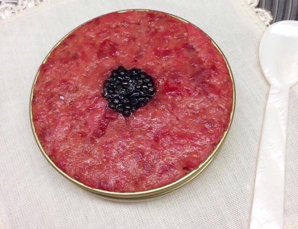 Il primo dei due antipasti presentato nella tin can è il Qaviar Beef Tartare. Tartara di manzo e cuore di caviale. Semplice e diretto. Assemblaggio ben riuscito di due materie prime di assoluta qualità.