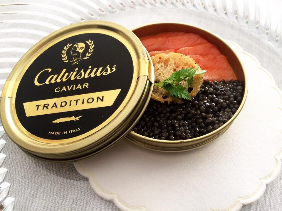 Ancora “UpstreamCalvisius”.Stavolta elaborato in un crescendo di sapori alla francese. Assemblaggio a strati, ricomposto all’interno della tin can da 100 grammi di “Calvisius Caviar Tradition”. Patata in purea, cetriolo ed in cima uno yin & yang di caviale Calvisius e salmone selvaggio Upstream. Esteticamente affascinante, l’unica pecca di questo tipo di presentazione è un’obiettiva difficoltà nel riuscire a degustare insieme tutte le componenti. Ognuna di esse è ben studiata e l’elemento che le tiene insieme è il cetriolo in sfoglie, pensato per aumentare la salivazione e preparare il palato alla sapidità spiccata del caviale e del salmone.