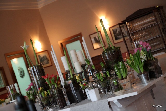 Tavoli grandi e candidi che a mano a mano si riempiono di buon mangiare.