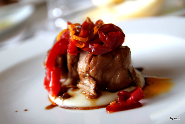 Il maiale bianco, peperoni all’aceto, arance e vin cotto. Goloso e stimolante.
