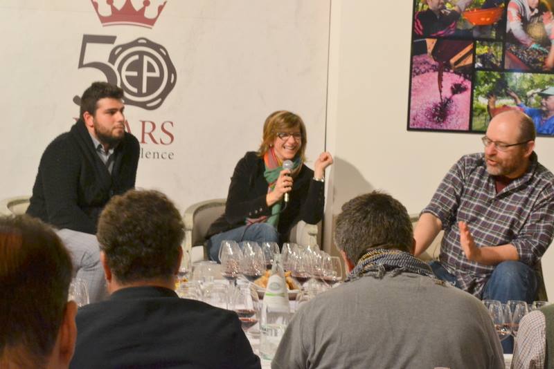 Ha cominciato quando sulle colline teramane molti mollavano perché si era deciso che l’agricoltura dovesse morire per confluire la forza lavoro all’industria. Non lo ha mai accettato in quanto il suo essere uomo coerente non poteva certo rinnegare le origini contadine della famiglia e del proprio territorio. E questa costanza perpetuata nel tempo ha consentito al suo Montepulciano d’Abruzzo di preservare il proprio stile elegante, profondo, a tratti scontroso, specie nei primi anni dalla vendemmia. Ecco perché nell’attraversare questi coraggiosi cinquant’anni con una verticale di nove millesimi, non ci imbattiamo mai in vini polposi e morbidi, omologati allo stile degli anni 80 e 90 che tanti danni ha arrecato all’identità dell’enologia italiana. In sala qualcuno gli ha chiesto se avesse in programma l’utilizzo dell’anfora essendo i suoi vini naturali ed integrati nel circuito dei Triple A. La risposta è stata secca e decisa: ma che d’è st’anfora? Al suo fianco, come sempre ci sono le figlie Daniela e Sofia, oggi coadiuvate dalla giovane e bravissima Chiara, figlia di Daniela. Veniamo alla verticale.
