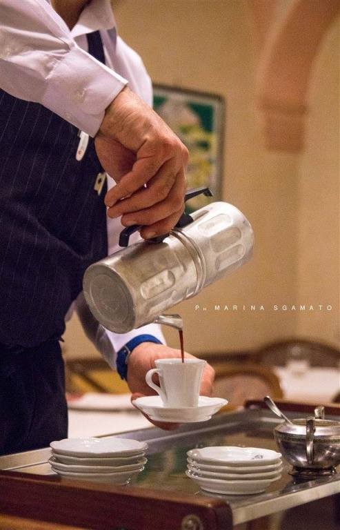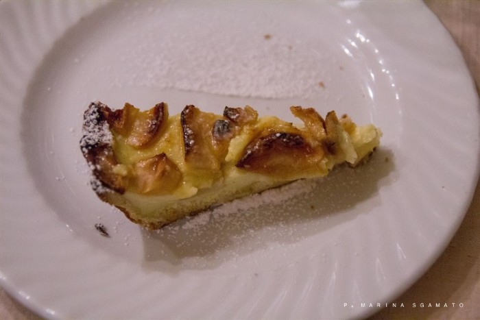 Pasta frolla dal giusto spessore, saporita crema pasticciera, aromatizzata al limone, e Mele tagliate a fettine, leggermente caramellate, deliziano il palato del “viaggiatore Slow”. Intanto, in sala, Antonio si destreggia con un carrello, su cui è posta la classica caffettiera napoletana, tazzine, piattini e zuccheriera in argento. Le strade dell’inizio confluiscono in una sola direzione: la tazzina di caffè. Quale strada prendere dopo? E chi lo sa, per adesso prendiamoci il caffè!