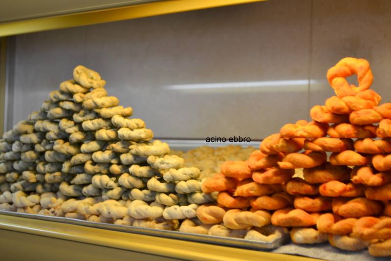 E’ ormai noto che venendo qui si trovano le delizie tipiche da forno e sempre di ottima qualità. Si viene per i taralli sugna e pepe, ma anche per quelli ai friarielli o ai peperoni, poi per i naspri al limone o al cioccolato, per i roccocò che si fanno tutto l’anno, per i quaresimali, per le freselle da mettere nella zuppa di cozze o in quella di maruzzielli (lumachine di mare).