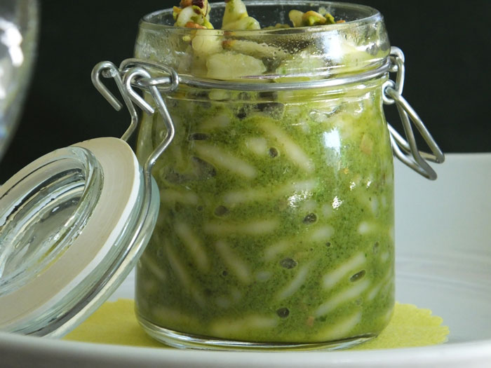 Infine un piatto delicato. Cavatelli al pesto di basilico e pistacchio serviti in un “boccacciello”. Non stupisca il pistacchio in Lucania. A meno di 100 chilometri c’è Stigliano terra di pistacchi gustosissimi. Nel frattempo Paternoster guarda fuori dall’ampia finestra in una giornata di sole splendida e racconta la sua terra con lo stesso amore di chi narra il suo amore per una donna.