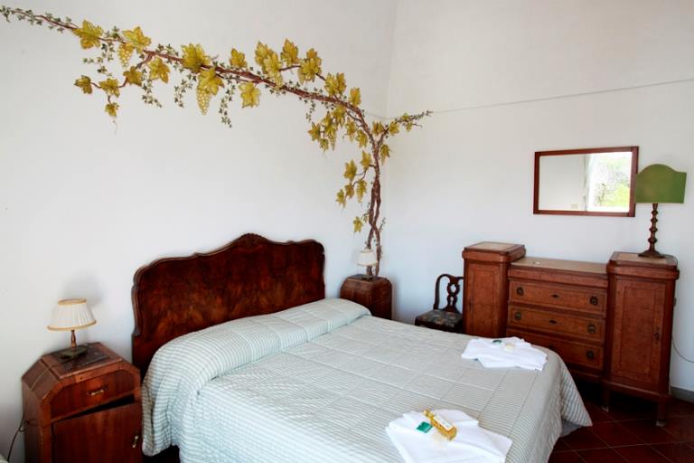Poi ci sono gli alloggi, ricavati dai tre blocchi nati attorno al palmento settecentesco i cui “tubi” di pietra spuntano ancora in sala da pranzo. In tutto otto camere, luminose e confortevoli, ampie, dall’atmosfera piacevolmente familiare, ben arredate ma senza orpelli fastidiosi, affacci bellissimi, quiete assoluta, mobili della nonna, buon gusto e un certo understatement di stile che non guasta.