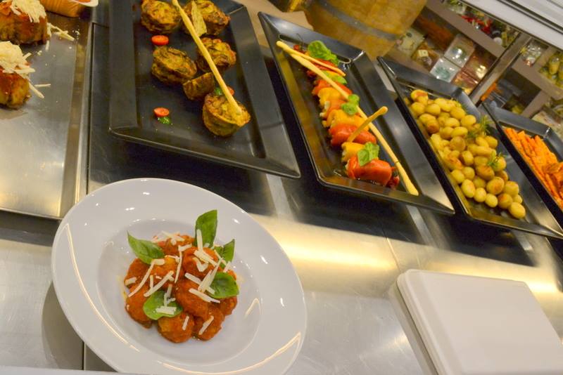 Al centro del lunghissimo banco c’è un ampio spazio dedicato alla gastronomia da asporto con piatti pronti che arrivano di continuo dalla cucina alle spalle. In questo periodo è possibile trovare: gateaux di patate, lasagna, cannelloni al sugo, trippa al sugo, soffritto, tacchinella ripiena, coniglio ripieno, stinco al forno, zampone, roast beef, polpette fritte e al sugo, capretto al forno con patate, coniglio beneventano disossato e ripieno, cappone ripieno, guancia o salsicce con friarielli e una buona scelta di contorni.