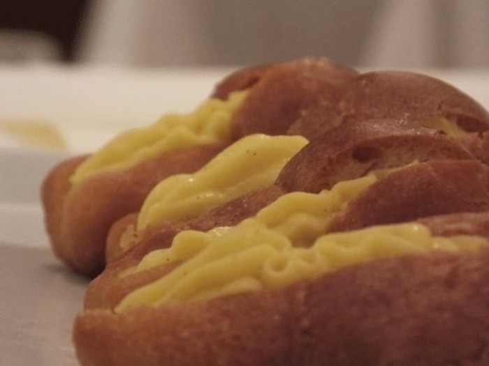 Le promesse sono un debito. E i ragazzi se promettono mantengono. A questo punto è arrivato un Babà con crema pasticcera in luogo del dolce che avrebbe dovuto realizzare Trapani (babà con zabaione e frutta di stagione).