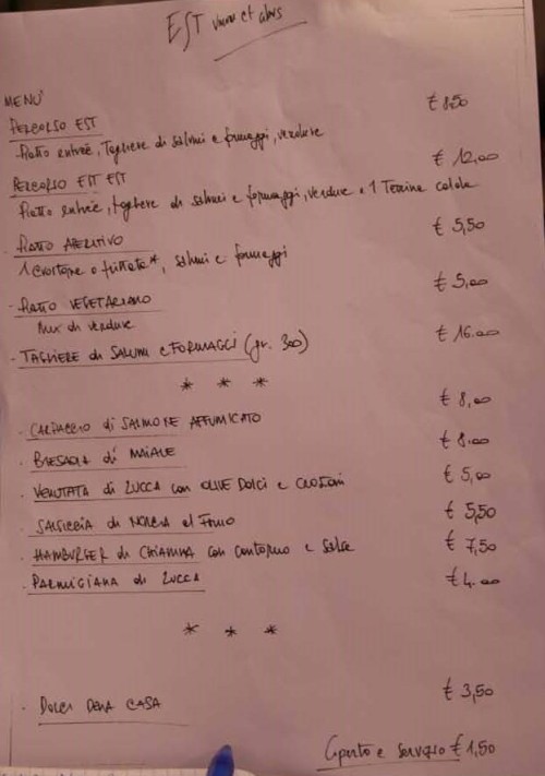 Come si diceva, i prezzi sono molto contenuti e diversificati, con menu degustazione a vari prezzi, o meglio dire di vari livelli e il singolo piatto: come il piatto del giorno e il tagliere di salumi e formaggi. Non si rischiano sorprese…