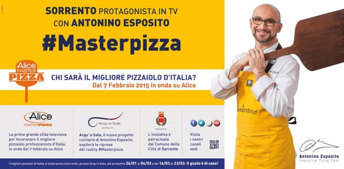 Sabato 31 gennaio inizieranno a Sorrento le riprese della prima edizione di “Master Pizza”, il reality show di Alice Tv che incoronerà a Sorrento, il miglior pizzaiolo d’Italia. La conferenza stampa di presentazione di “Master Pizza” si terrà venerdì 30 gennaio prossimo, alle ore 18.00 presso il Comune di Sorrento. A dare conferma che il programma televisivo si svolgerà’ proprio nella Città del Tasso, attraverso facebook e twitter, è stato lo chef sorrentino, Antonino Esposito, soprannominato “Mr. La Frusta Sorrentina”, volto noto a telespettatori e peninsulari che da anni, in qualità di Maestro Pizzaiolo, porta il nome della nostra terra in giro per il mondo.