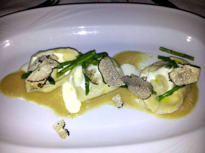 Cappellacci alla genovese dentro e fuori, fonduta al parmigiano, asparagi, guanciale e tartufo di Tommaso Morone