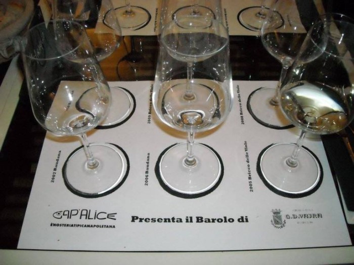 Grande era l’attesa che si respirava da giorni fra gli appassionati per la “serata Barolo” organizzata da Marina Alaimo nell’ambito degli appuntamenti periodici, tutti imperdibili, che si susseguono nella cornice intima ed accogliente dell’enosteria “Cap’alice” di Mario Lombardi; attesa che nasceva, tra l’altro, dal fatto che le etichette presentate, Vajra e Baudana, non sono attualmente reperibili in città.