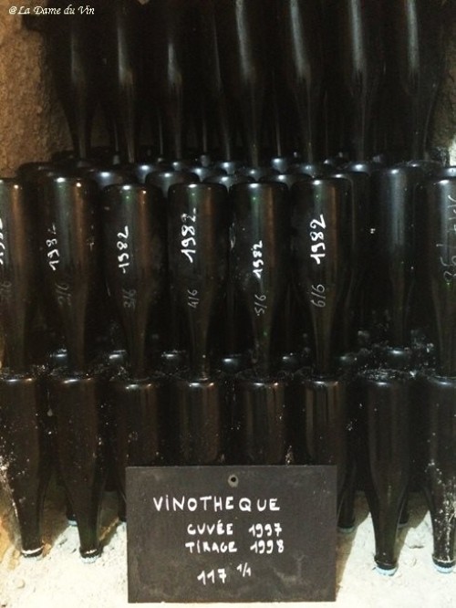 In alcune piccole grotte trovano posto le bottiglie più vecchie, quelle che Jean-Loup conserva per trovare una traccia della sua produzione negli anni che verrano.