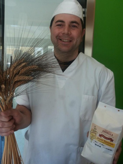 Vito Codella ha il coraggio dei giovani. Ha 33 anni e già da tempo si è intestardito sul ricostituire la filiera del grano che in passato era il fiore all’occhiello della comunità calitrana. Nel 2009 è riuscito a reimpiantare con successo la cultivar Senatore Cappelli, storica protagonista di questo areale almeno dal 1910, affiancato dal Centro Ricerca per l’Agricoltura di Foggia. Riesce a produrre circa 500 ql. di farina all’anno da quelle bellissime spighe dorate caratterizzate dai tipici lunghi baffi neri. Il suo grano viene macinato dal mugnaio del paese, l’unico sopravvissuto in contrada Isca Ficocchia, un tempo costellata di mulini azionati dalle acque del torrente Ficocchia. Imbiancato dalla farina del suo mulino, Vincenzo De Nicola raccoglie i grani antichi prodotti in zona sperando di riuscire ad incrementare sempre più la coltivazione di queste varietà storiche del luogo.